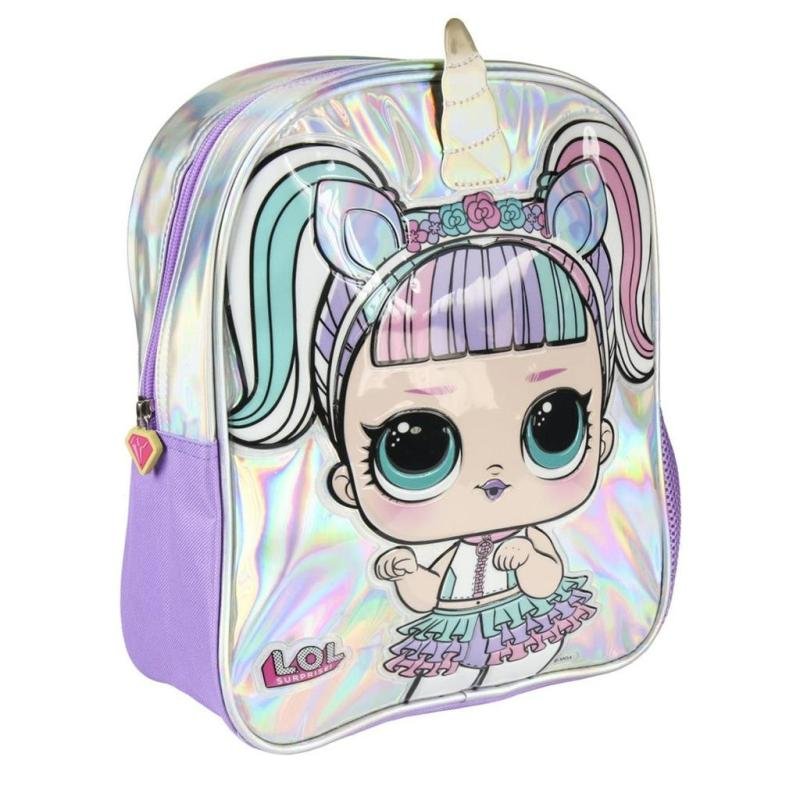 Dětský baťůžek 3D L.O.L. duhový. Přední strana panenka L.O.L. s rohem jednorožce. Batoh má pevná záda, praktické ucho na nošení v ruce a nastavitelné a polstrované popruhy, s dvěma zipy a boční kapsy na pití. Rozměr baťůžku 25×31×10 cm. Materiál 80% polyester a 20% PVC. przeczytaj całość