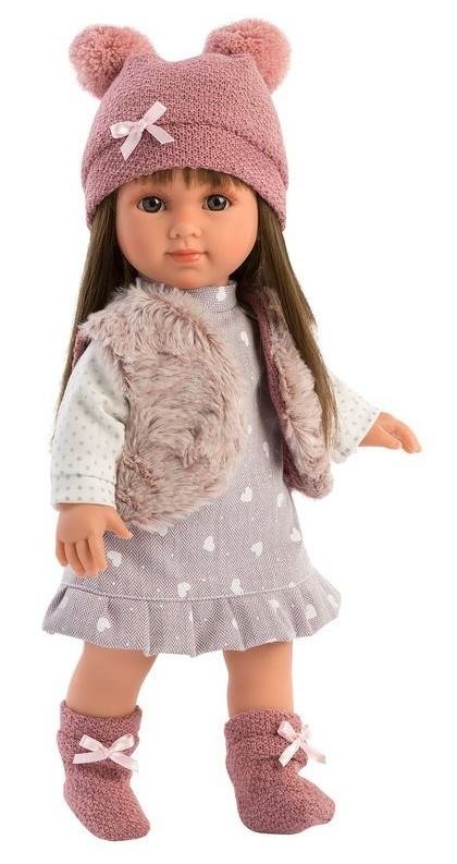Panenka bez zvuku s měkkým látkovým tělem a s vlásky po celé hlavě, podobající se malé slečně. Velikost 35 cm. przeczytaj całość