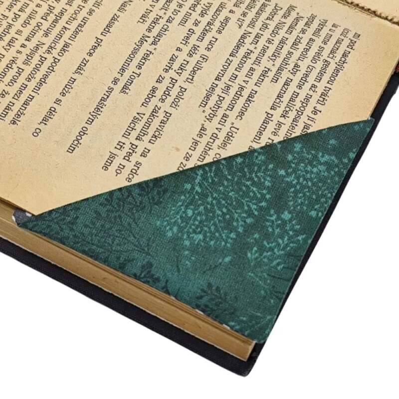 Rohová látková záložka do knihy - Botanicals - zelené větvičky