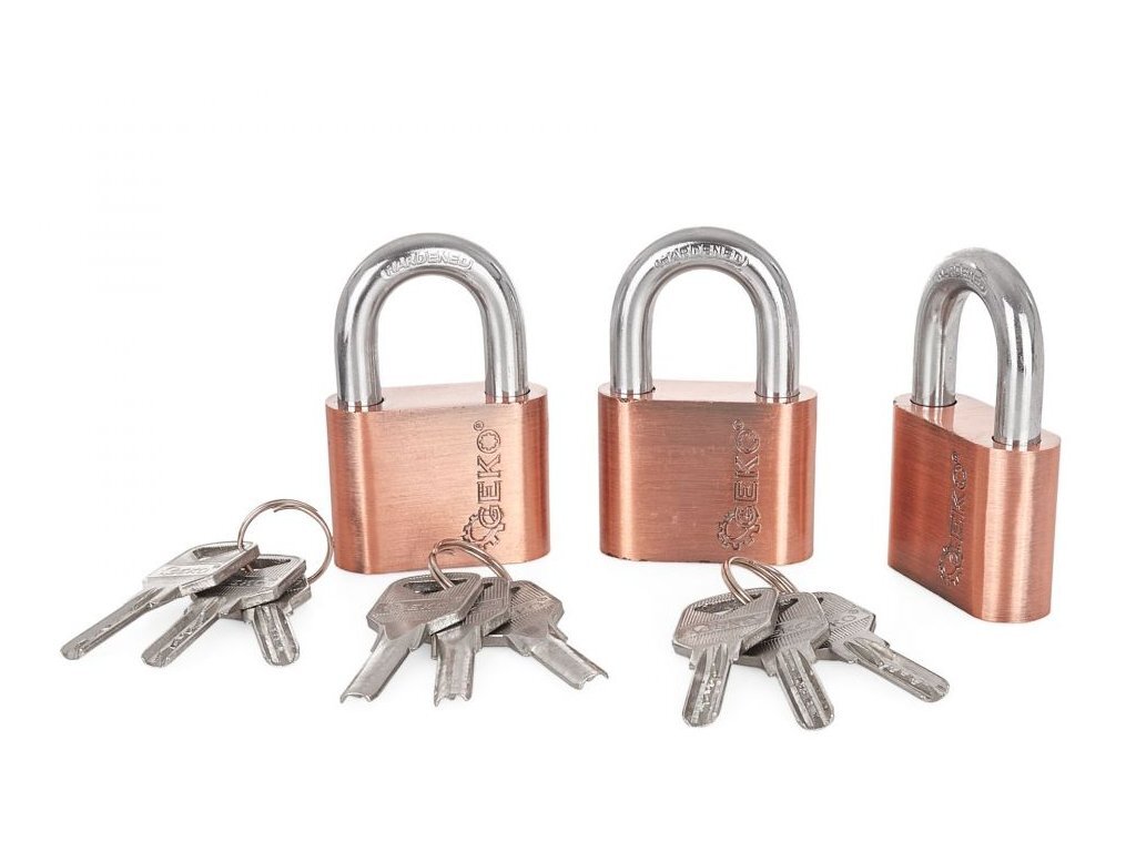 Sada 3ks poniklovaných visacích zámků na jeden klíč, 50mm GEKO