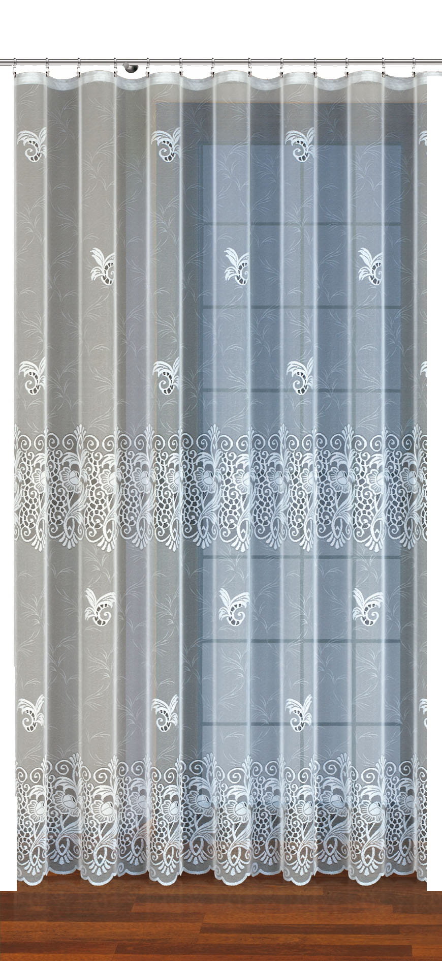 Kvalitní žakárová hotová dekorační záclona s řasící páskou v moderním provedení do kuchyně nebo obývacího pokoje v rozměru 200x250 cm. Záclona je připravena na zavěšení na žabky nebo háčky. 1 kus v balení. Záclona má řasící pásku 3,5 cm.