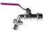 Standardowy zawór ogrodowy z dźwigniowym kurkiem, wykonany z żeliwa, odporny na rdzę i warunki atmosferyczne.