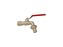 Standardowy zawór ogrodowy z dźwignią, wykonany z żeliwa, odporny na rdzę i warunki atmosferyczne.