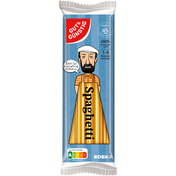 GG Špagety originální 500gVyrobeny ze 100% pšeničné semolinové krupice. Dobré jsou k nejrůznějším omáčkám, ale i na sladko.Vyrobeno v Německu.Složení: ze 100% PŠENIČNÉ krupice. Může obsahovat stopy VEJCE, HOŘČICE, SOJI A LUPINY. Návod k použití: Těstoviny vložte do vařící lehce osolené vody (cca...