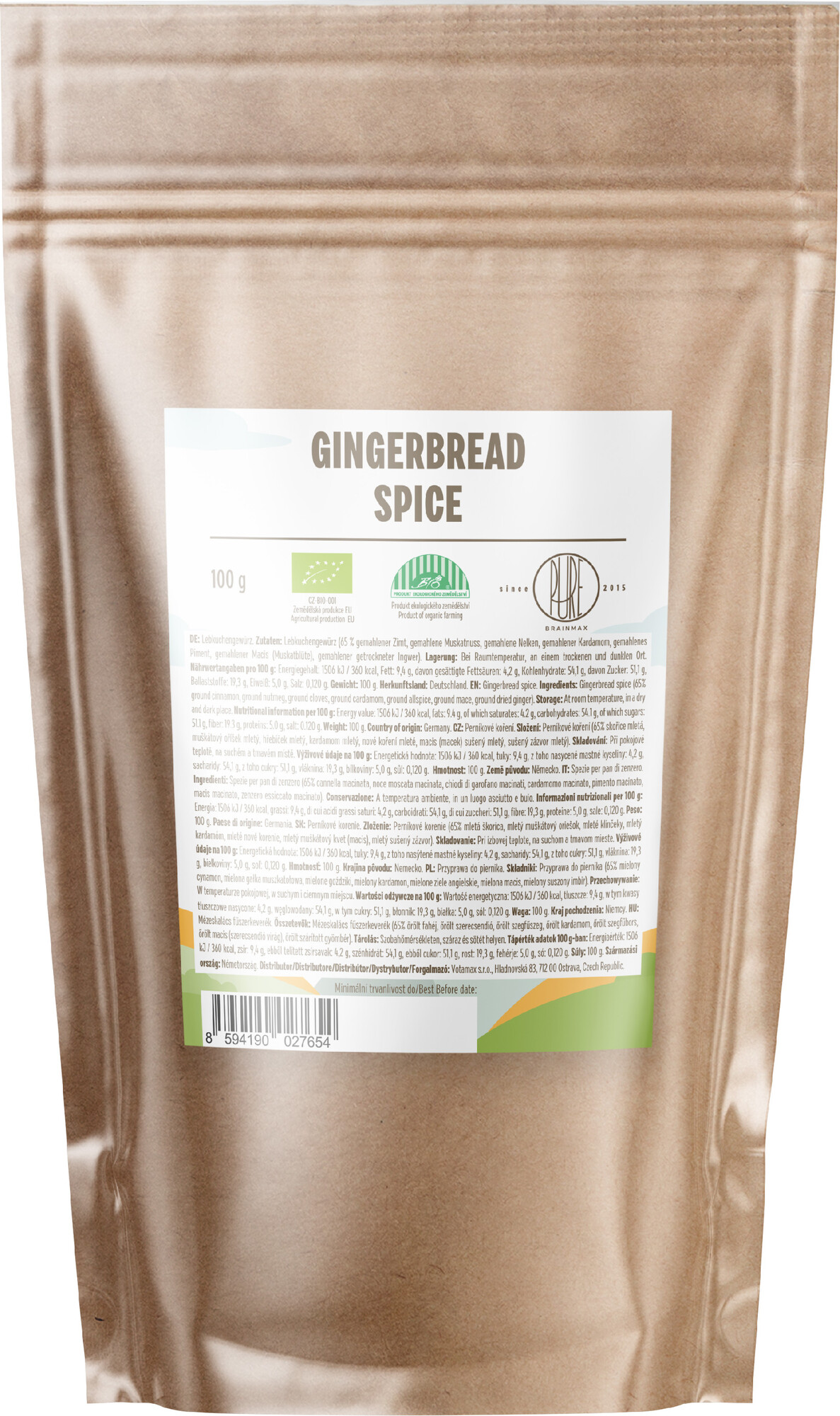 BrainMax Pure Gingerbread Spice, Perníkové koření, BIO, 100 g
