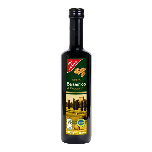 GG Balzamikový ocet z Modeny IGP 500 mlBalzamikový ocet či balsamico (italsky aceto balsamico) je kulinářská kořenící přísada pocházející z Itálie. Jedná se o vinný ocet vyrobený ze zahuštěného moštu vinných hroznů. Svoji nasládlou kořenitou chuť získává až po několikaletém zrání v sudech.IGP...