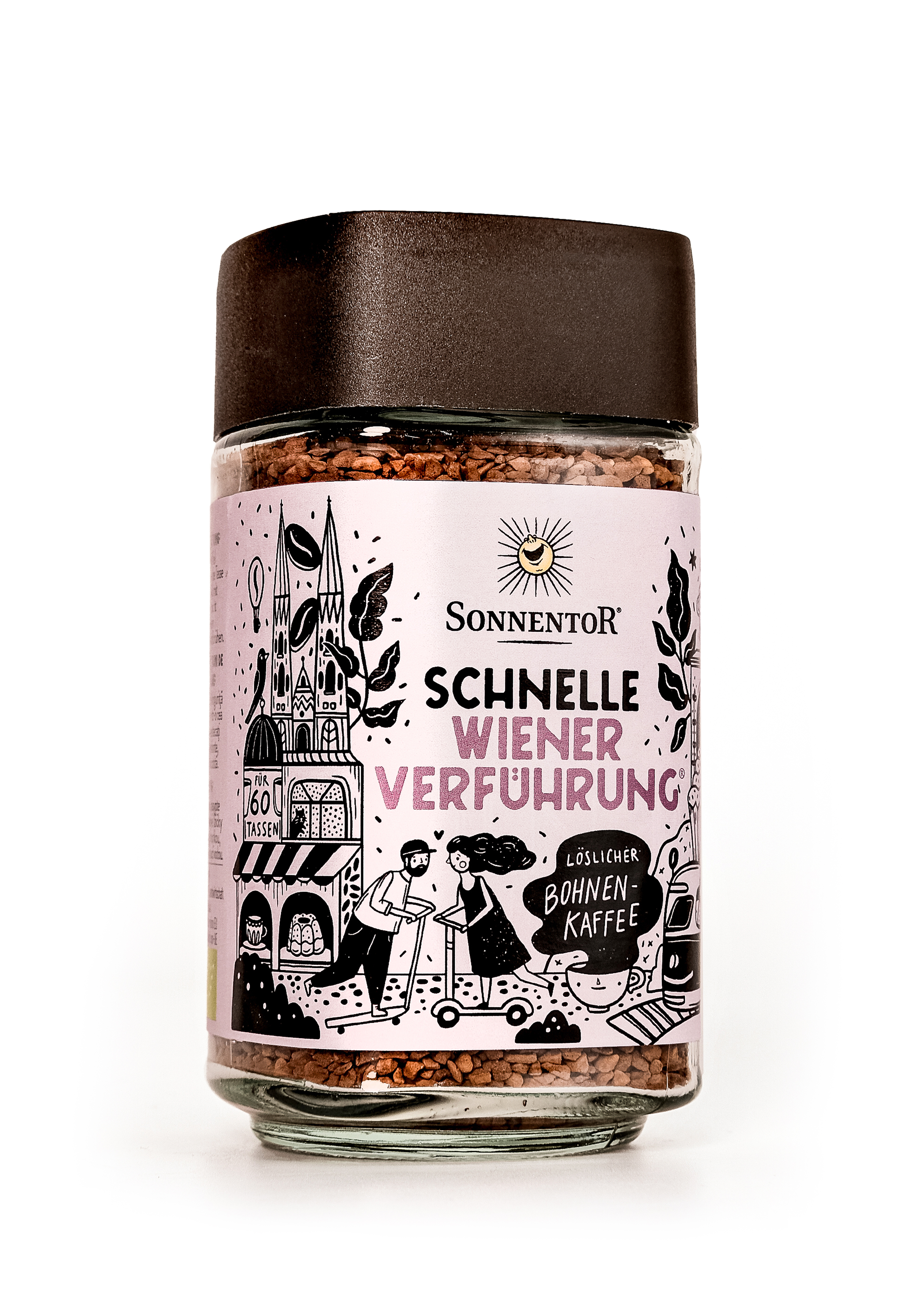 Káva Vídeňské pokušení instantní bio 100g od výrobce Sonnentor. Produkt v bio kvalitě. Pěstováno metodou ekologického zemědělství.Když někdy chceme něco rychle, a také aby to dobře chutnalo – šálek kávy Vídeňské pokušení je v okamžiku připraven. Jednoduše zalít 1-2 čajové lžičky instantního...