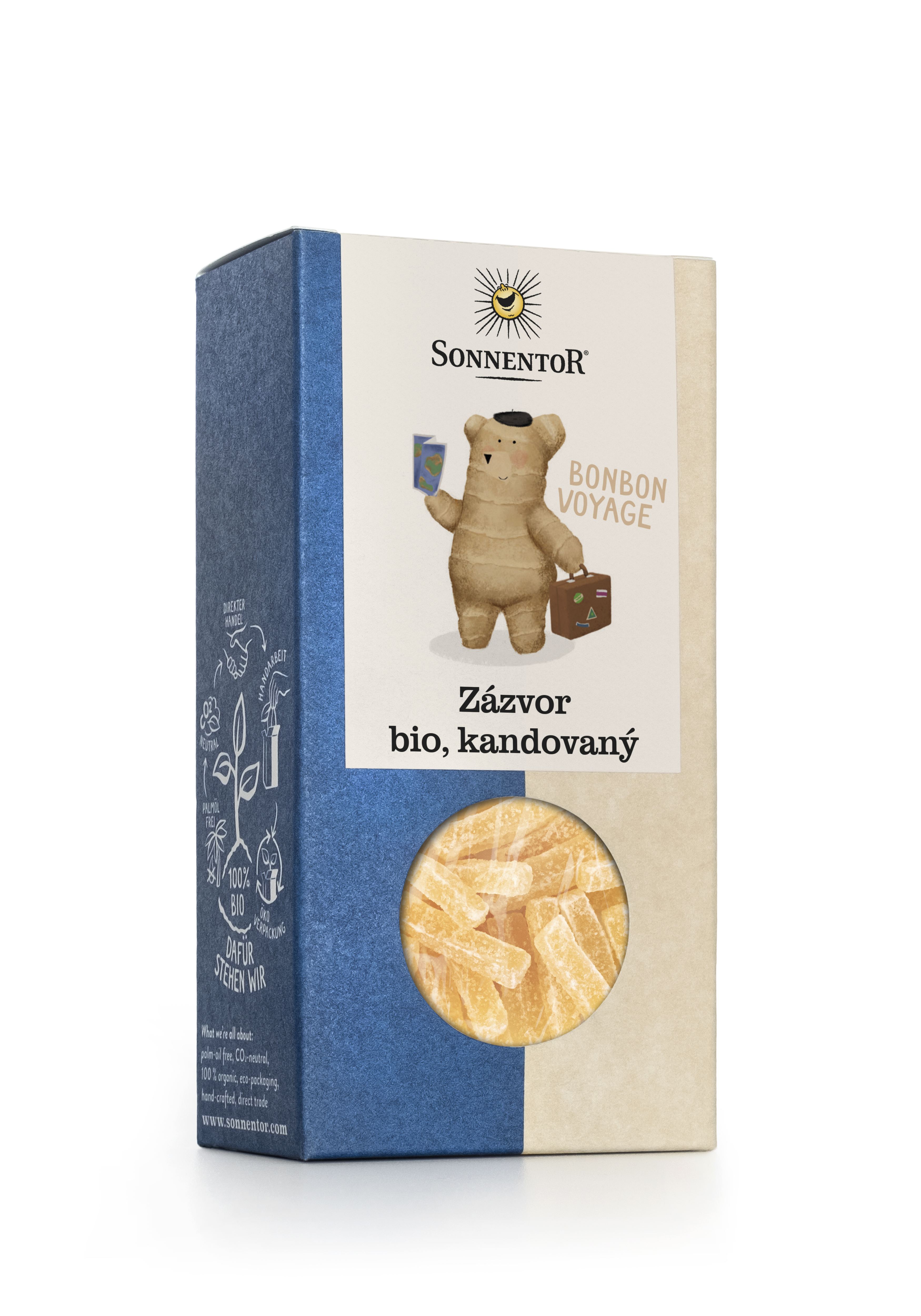 Zázvor kandovaný bio 75g od výrobce Sonnentor. Produkt v bio kvalitě. Pěstováno metodou ekologického zemědělství.Kdo by rád cestoval po zeměkouli ze své kuchyně, ten se bez zázvoru neobejde. Jeho prohřívající chuť s osvěžujícím dřevitým tónem a citrusovým nádechem jej dělá oblíbeným po celém...