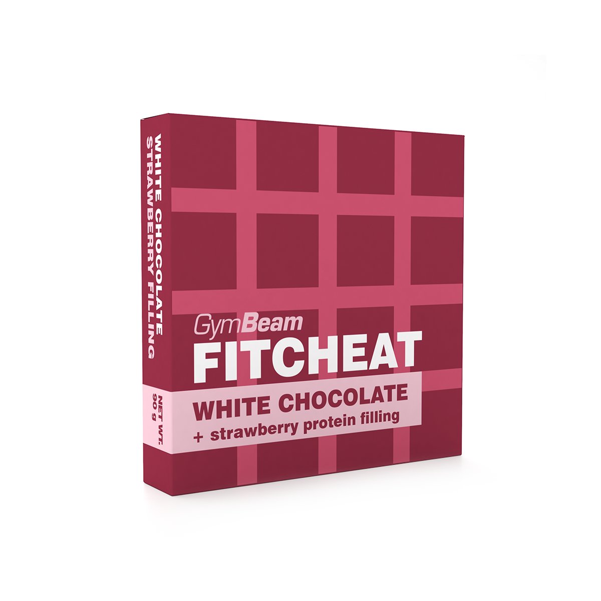 Fitcheat Protein Chocolate - GymBeam - bílá čokoláda s jahodou - 90 g