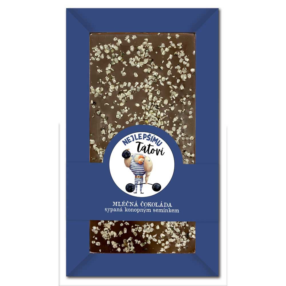 Ručně vyráběná mléčná čokoláda 80 g s konopným semínkem - nejlepšímu tátoviObsahuje sušené konopné semínko.Obsah kakaa: 36 % v mléčné čokoládě.Složení: Cukr, sušené plnotučné mléko, kakaové máslo, kakaová hmota, emulgátor: sójový lecitin, přírodní vanilkový extrakt. OGM: Nepochází z geneticky...