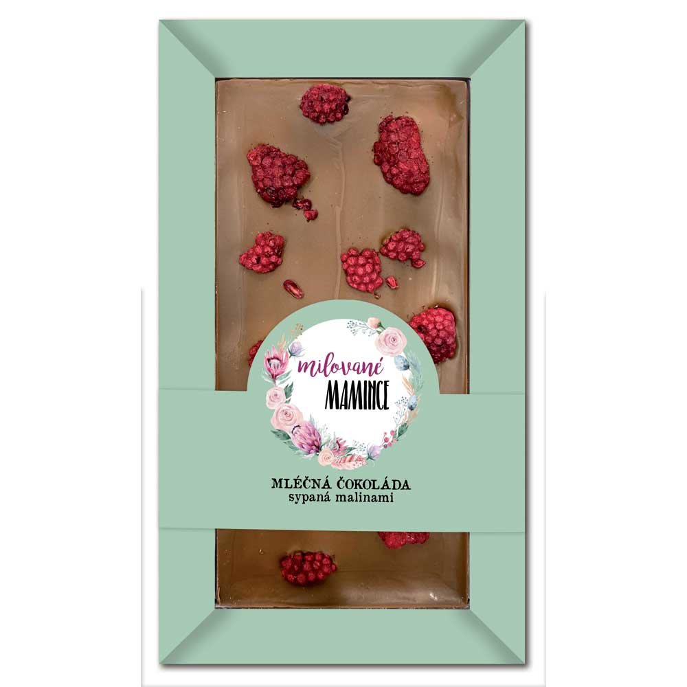 Dárková ručně vyráběná mléčná čokoláda 80 g s malinami - milované maminceObsahuje mrazem sušené (liofilizované) ovoceObsah kakaa: 36 % v mléčné čokoládě.Složení: Cukr, sušené plnotučné mléko, kakaové máslo, kakaová hmota, emulgátor: sójový lecitin, přírodní vanilkový extrakt. OGM: Nepochází z...