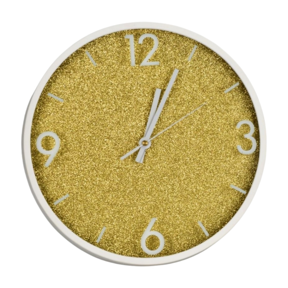 Průměr: 29 cm Materiál: kov a sklo Barva: zlatá Baterie: 2x AA (není součástí balení)