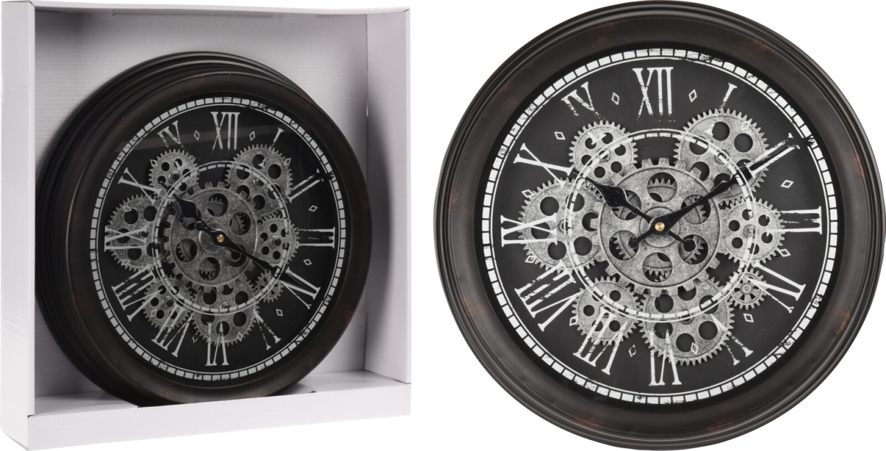 Industriální hodiny s otevřeným strojkem 35 cm, stříbrné