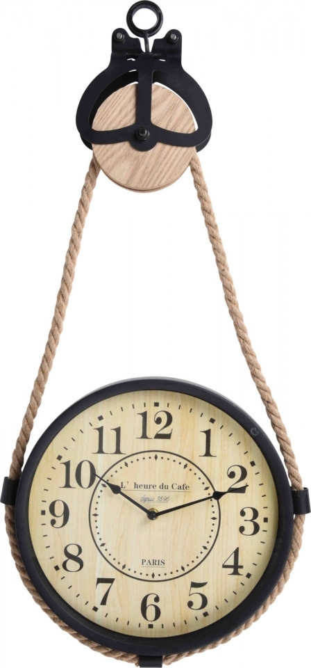 Dekoracyjny metalowy zegar z liną i bloczkiem.