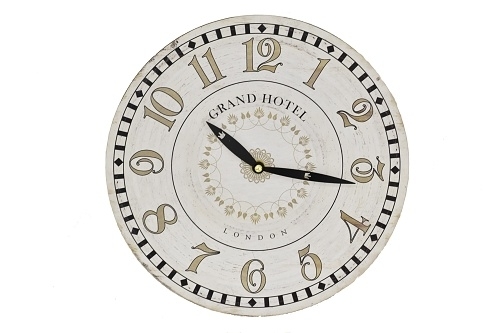 Nástěnné hodiny s nápisem GRAND HOTEL.Materiál: MDF deskaRozměr:průměr 28 cm przeczytaj całość