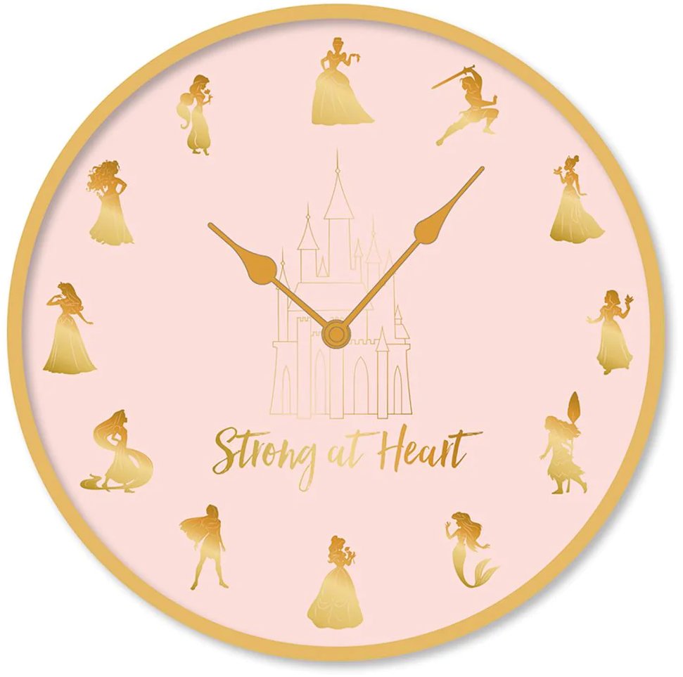 Oficiální produkt - nástěnné hodiny a doplňkové zboží z katalogu produktů s licencí Disney Princess.Zboží je legálně licencováno a prodáváno se souhlasem vlastníků licenčních práv.Nástěnné kulaté hodiny s grafikou Princezen a nápisem Strong at heart. Hodiny vhodné do pokojů všech fanoušků...