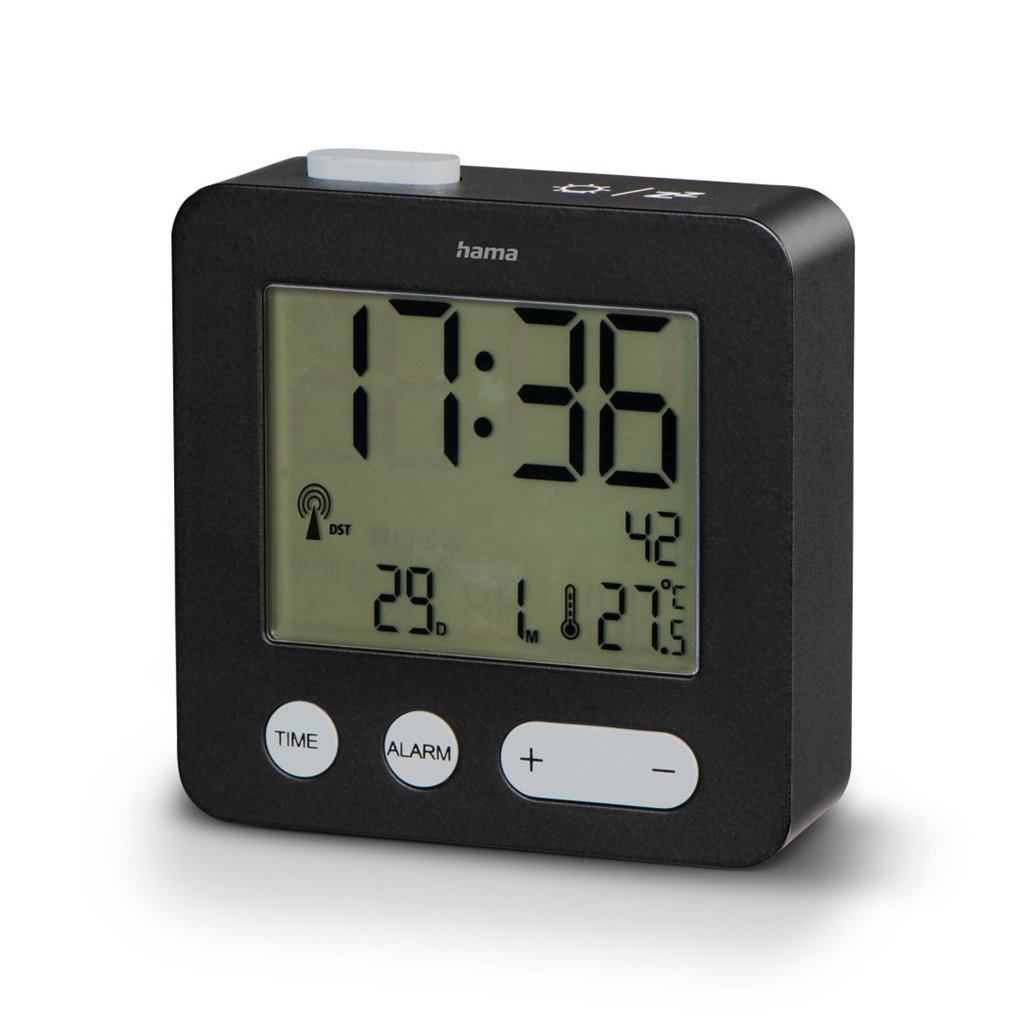 budík s digitálním zobrazením času, data a teplotyřízený rádiovým signálem DCF pro automatické nastavení času podle nejpřesnějších hodin světamožnost vypnutí příjmu rádiového signálu DCFčas je zobrazený ve formátu hodiny, minuty a sekundyzvonění budíku se zrychlujícím se zvukemmožnost manuálního...