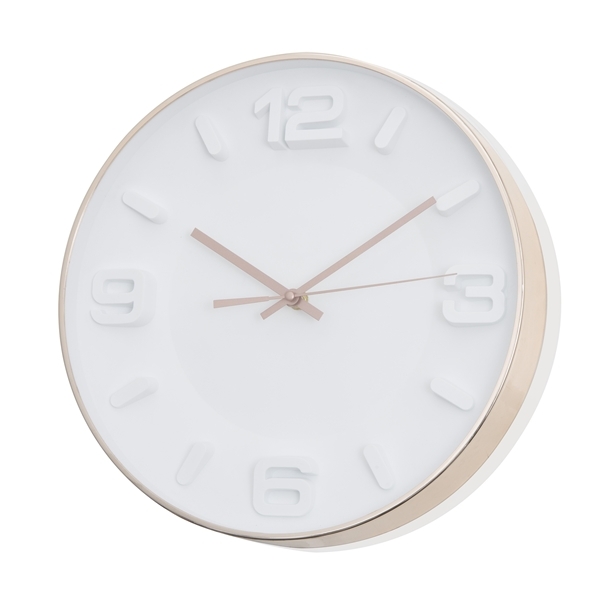 Nástěnné hodiny v bílé barvě ze skla a plastu. Okraje jsou měděné barvy.Typ baterie: 1x AA ( baterie nejsou součástí balení)Průměr: 30 cm  Italský design plný elegance a originality, to je Brandani, italský výrobce designového nábytku a bytových doplňků. Designéři se snaží o to, aby každý... przeczytaj całość