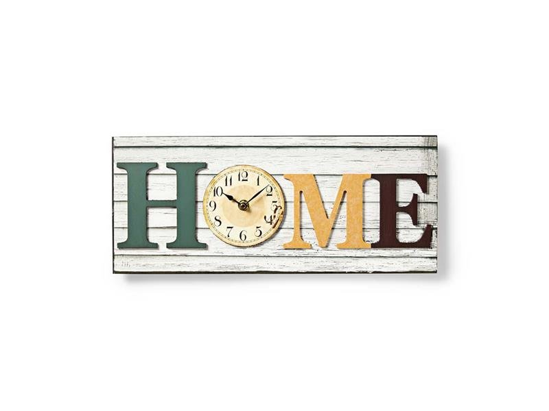 Hodiny NEDIS CLWA001WDH40 40cm Tyto nádherné barevné Nedis nástěnné hodiny v rustikálním stylu jsou usazeny v dřevěném rámu, kde tvoří písmeno „O“ ve slově „HOME“ (DOMOV). Hodiny lze snadno pověsit na stěnu, o napájení se stará 1x baterie AA (není součástí balení) a...