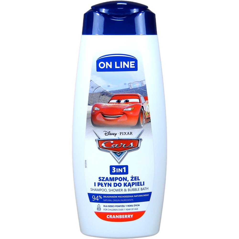 3v1 dětský šampon, sprchový gel a pěna do koupele značky On line s obrázkem Disney Cars s vůní brusinek. Dermatologicky testováno, s obsahem 94 % přírodních látek pro šetrnou péči o citlivou dětskou pokožku a jemné vlásky. przeczytaj całość