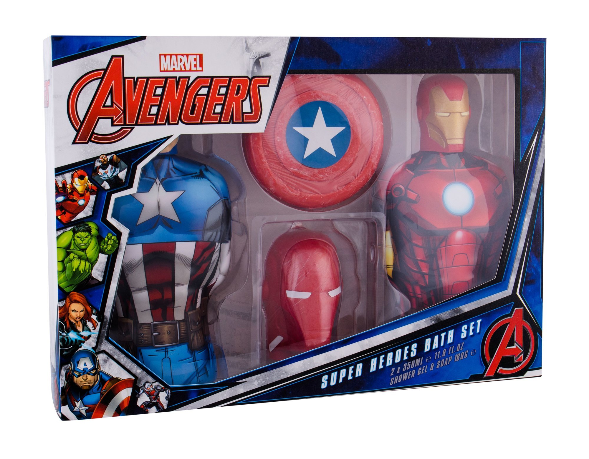Marvel Avengers sprchový gel Captain America 350 ml + sprchový gel Iron Man 350 ml + mýdlo Captain America 180 g + mýdlo Iron Man 180 g