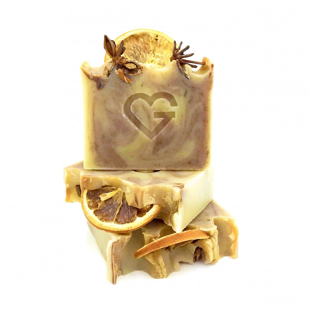 100% přírodní tuhé mýdlo Cinnamon orange s kořeněnými sladkými tóny je vyrobeno na bázi vysokého podílu bambuckého másla, které dokonale vyživuje a hydratuje pokožku. Obsahuje esenciální oleje ze skořicových listů a pomeranče, má jemný hřejivý účinek. Je vhodné nejen jako dárek!Mýdlo Cinnamon...