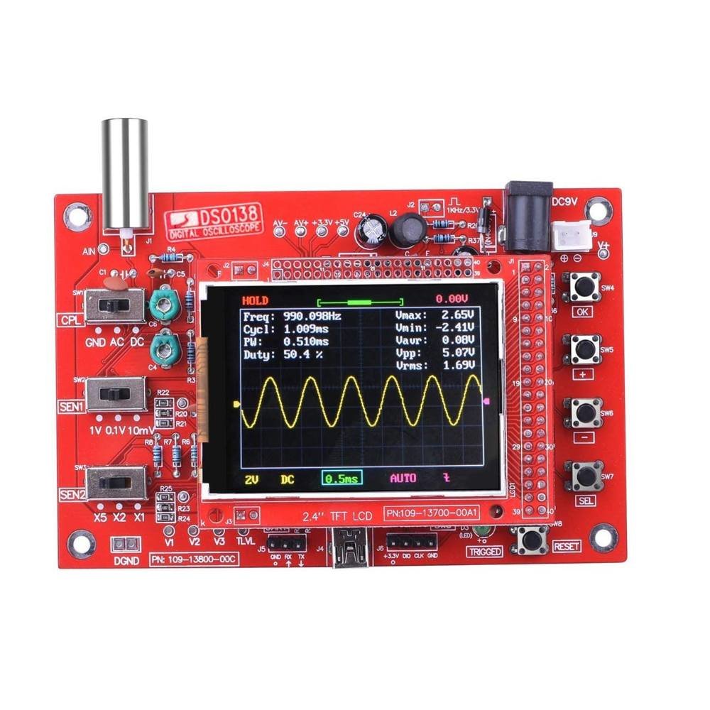 Stavebnice modulu digitálního osciloskopu do 200kHz. Procesor ARM Cortex-M3 (STM32F103C8) 2,4-palcový TFT LCD (320 X 240, 262 tisíc barev) Jedná se o open source k dispozici schéma i zdrojové soubory Zdatný programátor bastlíř si může přidat vlastní funkce Analogové pásmo 0 - 200kHz Vzorkovací frekvence max 1Msps Citlivost: 10mV / div - 5V / div Chyba