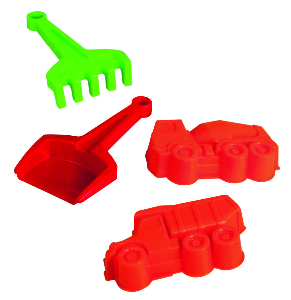 Sada obsahuje lopatku, hrabičky a 2 bábovky Tatra. przeczytaj całość