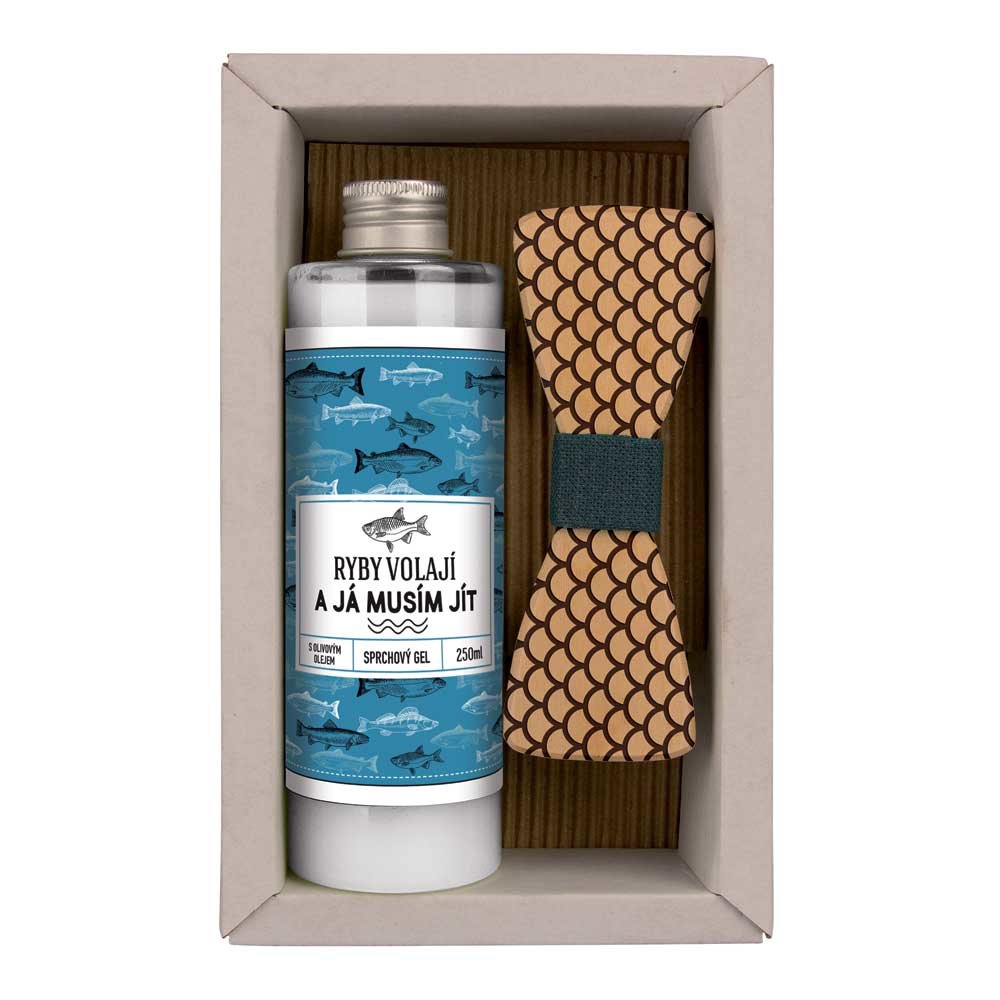 Dárkový kosmetický balíček pro rybáře - sprchový gel a dřevěný motýlekKrémový sprchový gel s olivovým olejem 250 ml. Krémový sprchový gel s olejem z plodů olivovníku evropského (Olea Europaea). Obsahuje kvalitní ošetřující kosmetický olivový olej se zjemňujícími a lubrikačními vlastnostmi, který...