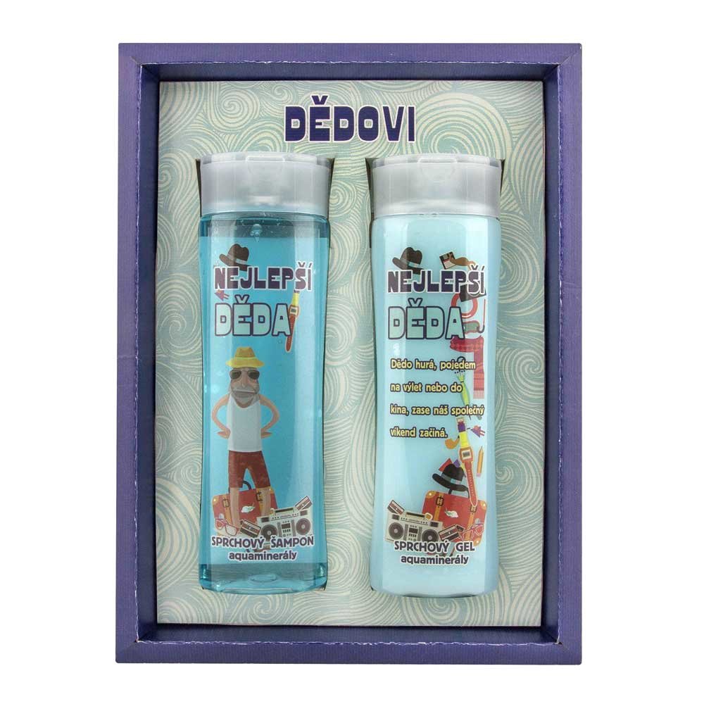 Kosmetický balíček nejlepší dědeček - sprchový gel 200 ml a sprchový šampon 200 mlDárková kosmetická sada pro dědečeka s extraktem z mořské řasy.Krémový sprchový gel s olivovým olejem a extraktem z mořské řasy 200 mlJemný prostředek osobní hygieny vhodný pro mytí celého těla včetně vlasů....