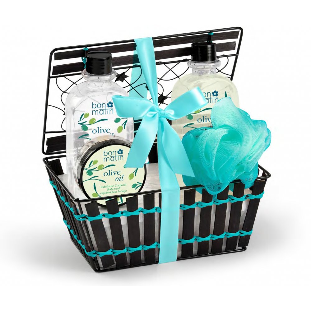 Dárková sada značky Bon Matin Levandule s dekoračním košíkem obsahuje 240 ml hydratační sprchový gel, 240 ml hydratační tělové mléko, 50 ml krém na ruce, vše s vůní levandule a houbičku na mytí przeczytaj całość