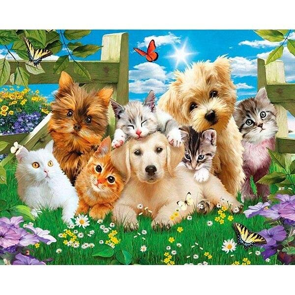 Mozaika diamentowa 5D - Psy i koty 40x30cm
