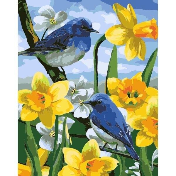 Malowanie po numerach - 40x50cm Ptaszki na żonkila
