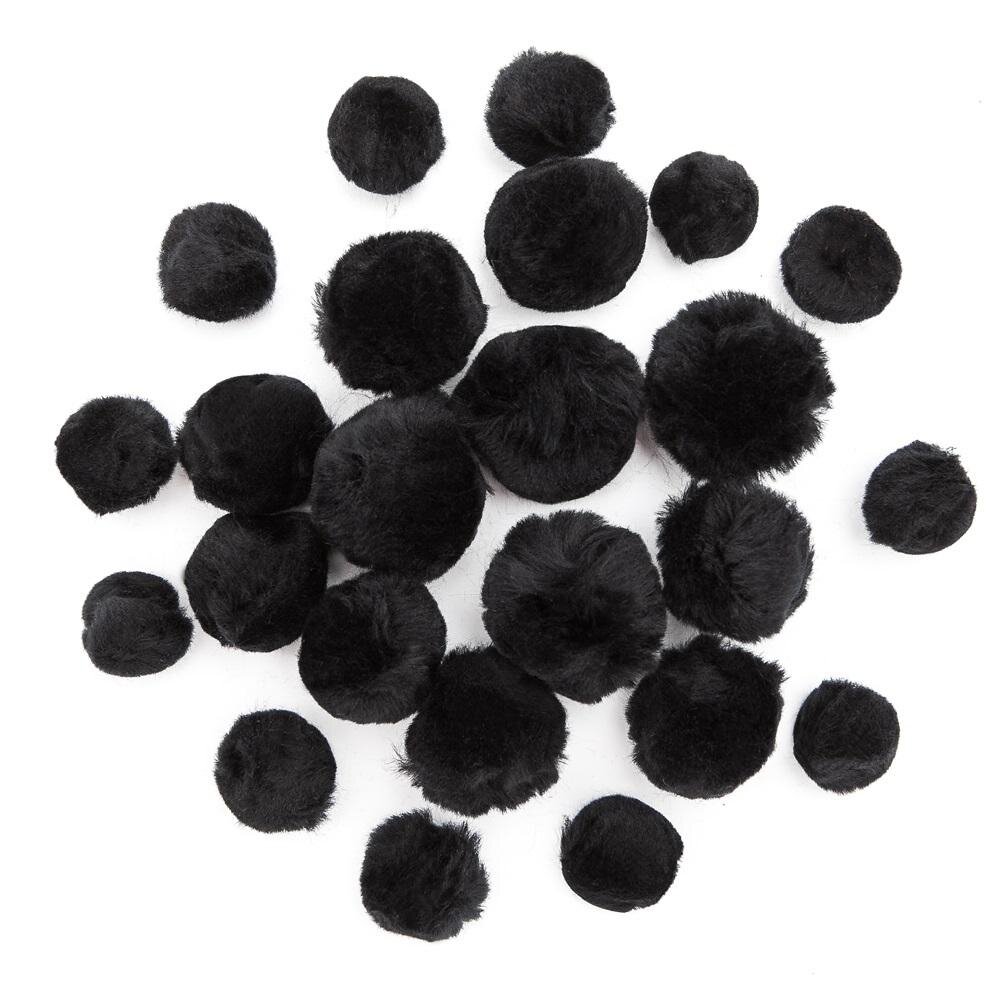 Pompony akrylowe mix czarne 24szt