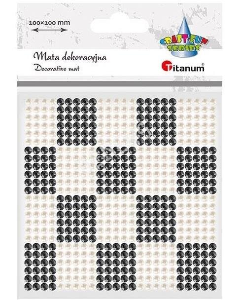 Mata dekoracyjna 100x100mm z perełkami białymi (średnica 4mm) i kryształkami czarnymi (średnica 3,5mm) przeczytaj całość