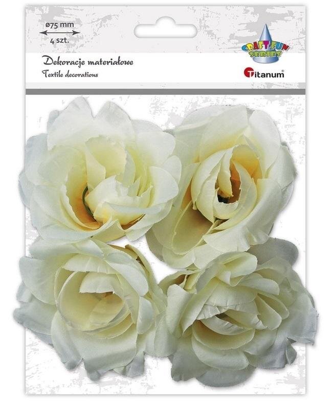 Materiałowe róże 3D średnica 75mm białe na druciku 4szt. przeczytaj całość