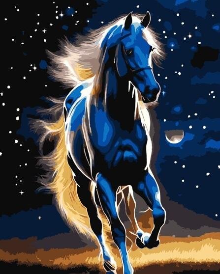 Zestaw do malowania numerami "Dumny koń" 40x50 cm Farbami metalicznymiZestaw do malowania numerycznego składa się z zagruntowanego płótna artystycznego na blejtramie, zestawu wysokiej jakości farb akrylowych odpornych na ścieranie i przypalanie o pojemności 2,5 ml 9% każda, nylonowych pędzli...