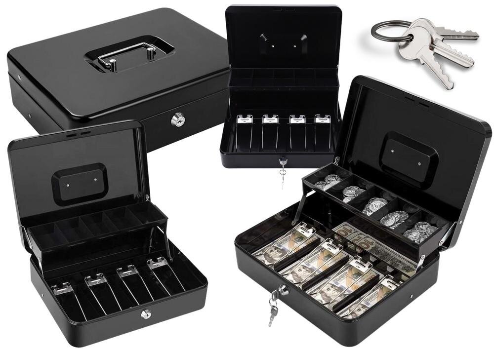 Kasetka Na Banknoty i Monety Na Kluczyk Metalowa Czarna Trwała i Praktyczna Kasetka Na Pieniądze Metalowa kasetka to solidne i bezpieczne rozwiązanie do przechowywania banknotów i monet. Zaprojektowana z myślą o maksymalnej organizacji gotówki, kasetka oferuje funkcjonalne przechowywanie w...
