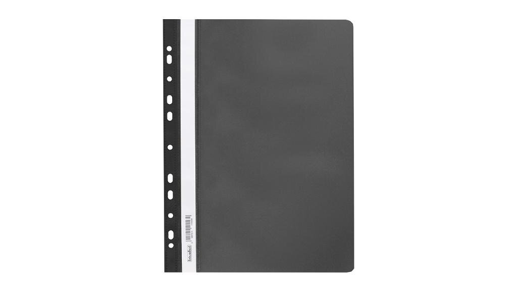 Skoroszyt wykonany z polipropylenu, miękki, przód przezroczysty, tył kolorowy. Europerforacja umożliwiająca wpięcie do segregatora z dowolnym ringiem. Wewnątrz klasyczny mechanizm z wąsem i listwą skutecznie zabezpieczający wpiętą zawartość; wąs o długości 14,5 cm. Na bocznej krawędzi wymienny,...