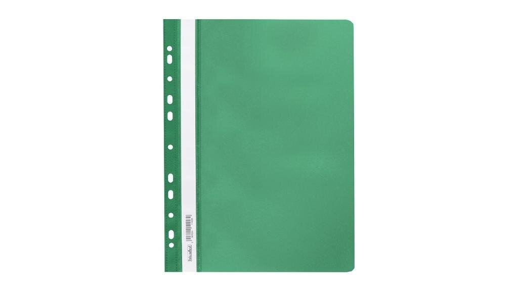 Skoroszyt wykonany z polipropylenu, miękki, przód przezroczysty, tył kolorowy. Europerforacja umożliwiająca wpięcie do segregatora z dowolnym ringiem. Wewnątrz klasyczny mechanizm z wąsem i listwą skutecznie zabezpieczający wpiętą zawartość; wąs o długości 14,5 cm. Na bocznej krawędzi wymienny,...
