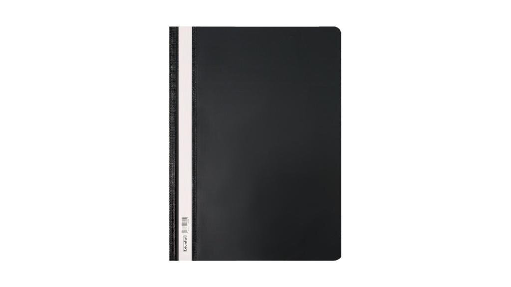 Skoroszyt wykonany z twardej folii PVC, przód przezroczysty, tył kolorowy. Wewnątrz klasyczny mechanizm z wąsem i listwą skutecznie zabezpieczający wpiętą zawartość; wąs o długości 16,5 cm. Na bocznej krawędzi wymienny, papierowy pasek do opisu zawartości z kodem kreskowym na szt. Dwa wycięcia... przeczytaj całość