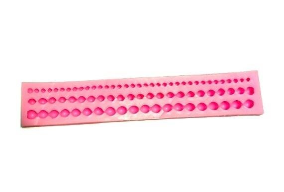 Forma silikonowa wielkości 22,5 cm x4 cm do odlewów z gipsu, mas plastycznych, plasteliny, modeliny, mas cukierniczych itp.Z formy jest możliwość odlania lub stworzenia 3 elementów w kształcie bordiury z perełek. przeczytaj całość