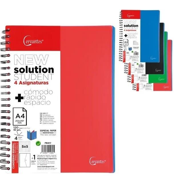 Notatnik na podwójnej spirali z nieprzezroczystą okładką z polipropylenu. 120 arkuszy z mikroperforacją ułatwiającą odrywanie stron. Papier90 g/m2. 4 wkładki oddzielające. Z paskami w4 kolorach. 4 otwory do archiwizacji. Kwadraty 5x 5 mm. Zawiera folder z wielokrotnym dziurkowaniem.Rozmiar A4.... przeczytaj całość