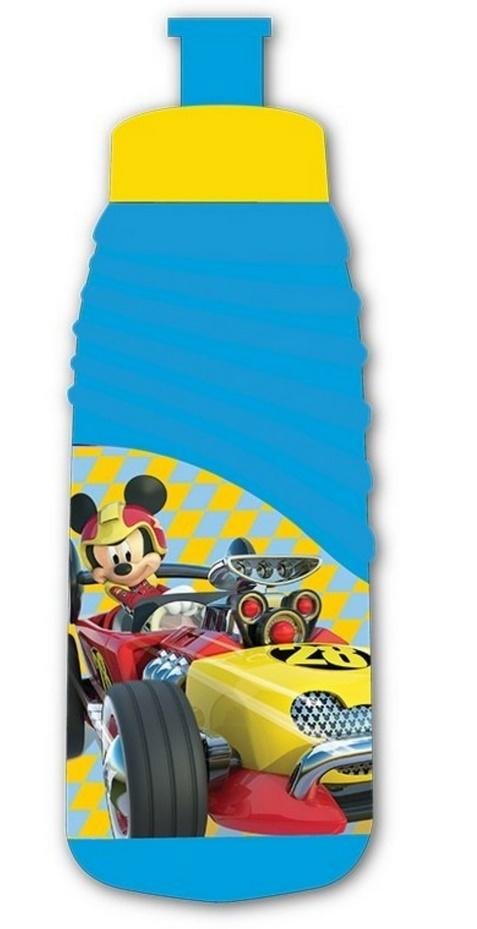 Bidon plastikowy, okrągły. Nakrętka innego koloru niż cały bidon, zakończona sportowym "dziubkiem". Na butelce nadruk wielokolorowy.Pojemność 450mlSzerokość: 6,6 cmDługość: 19,6 cm przeczytaj całość