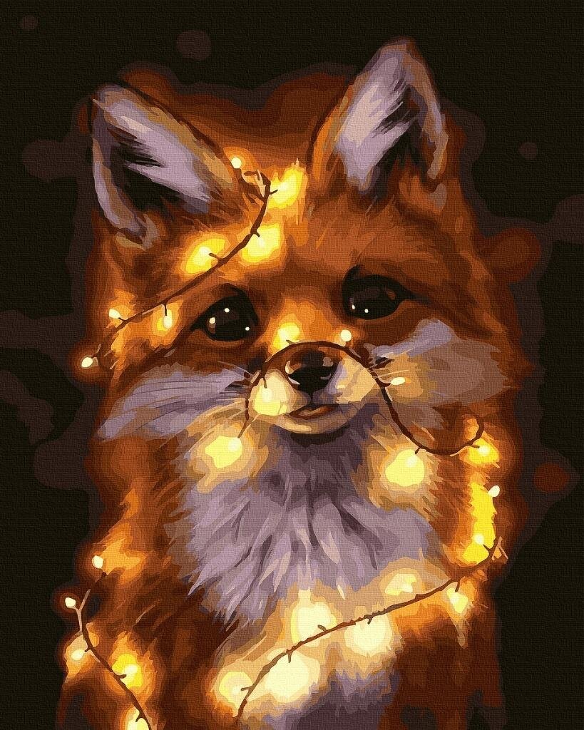 Rozczulający lisek opleciony światełkami ciepły, zimowy klimat, który wprowadzi magiczną atmosferę do każdego wnętrza.Poziom trudności: średni.Wymiary: 40x50 cm.Zawiera: płótno na ramie, ponumerowane farby akrylowe, zestaw pędzli. przeczytaj całość