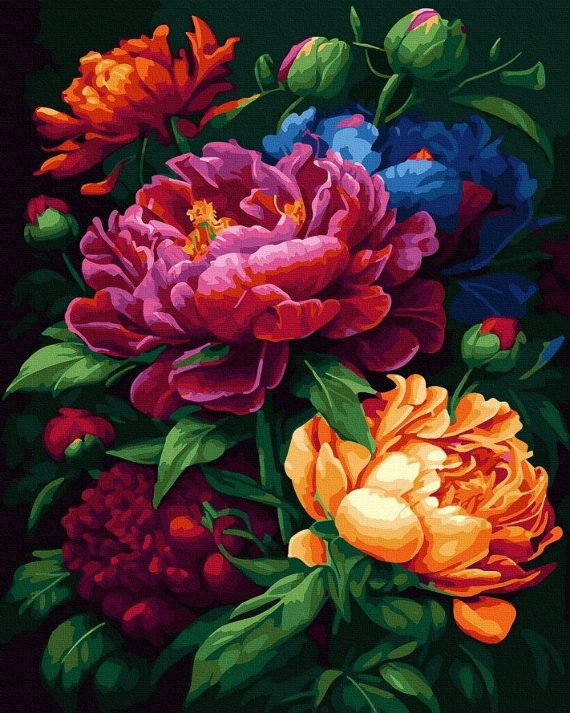 Pełne życia i kolorów piwonie w bogatym, realistycznym wydaniu. Doskonały wybór dla fanów klasycznych kwiatowych kompozycji.Poziom trudności: średni.Wymiary: 40x50 cm.Zawiera: płótno na ramie, ponumerowane farby akrylowe, zestaw pędzli. przeczytaj całość