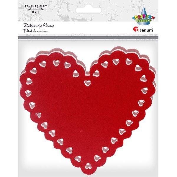 Filcowe serca 155x145mm 3xróżowe, 2xbiałe, 3xczerwone 8szt. przeczytaj całość