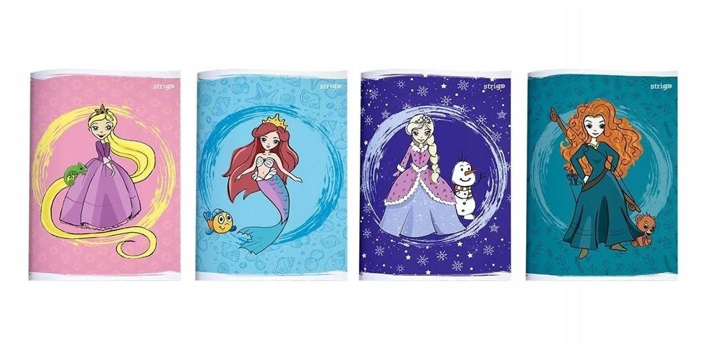 Opakowanie zbiorcze 20 sztuk. Mix wzorówKsiężniczki - Zeszyt szkolny A5, 16 kartek. Gramatura papieru: 70, liniatura: 3 linie. przeczytaj całość