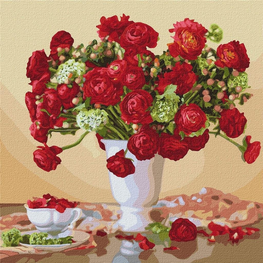 Malowanie po numerach - Karmazynowy bukiet 50x50cm