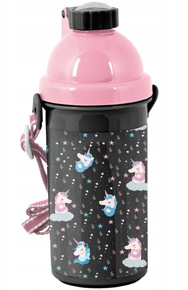 Bidon o pojemności 500 ml z regulowanym i odpinanym paskiem na szyję, przeznaczony do napojów o temperaturze max 60 stopni C. Produkt posiada certyfikat jakości - jest nietoksyczny i bezpieczny dla dzieci. BPA FREE przeczytaj całość
